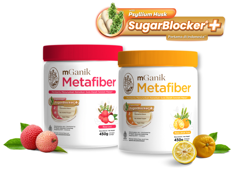 Suplemen serat pemblokir glukosa dengan Formula SugarBlocker+® yang memiliki efek Double Block, lebih efektif memblokir gula dari makanan secara 100% Alami.